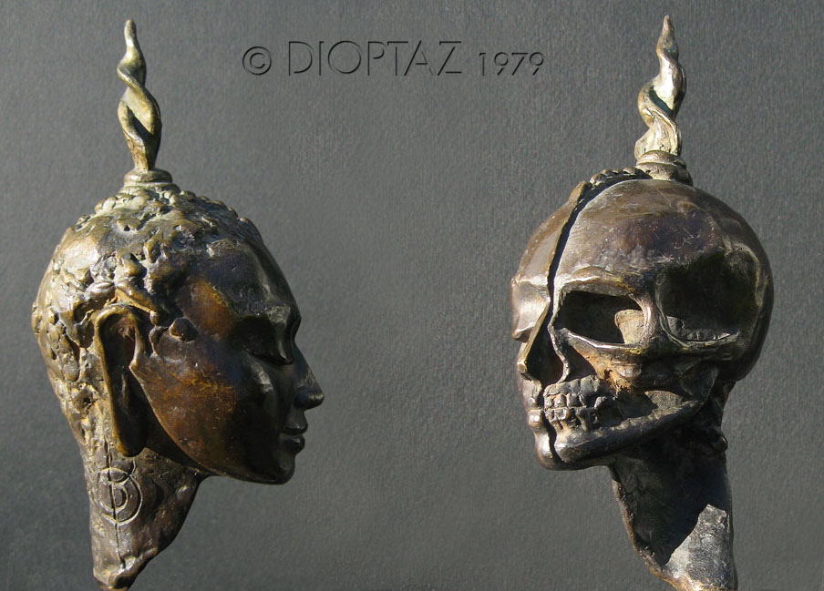 Dans les années 70, Michel-Laurent Dioptaz a une pratique intensive du Zazen. Les médailles, ci-dessus, furent gravées-ciselées, en 1975, au sortir de ses méditations.